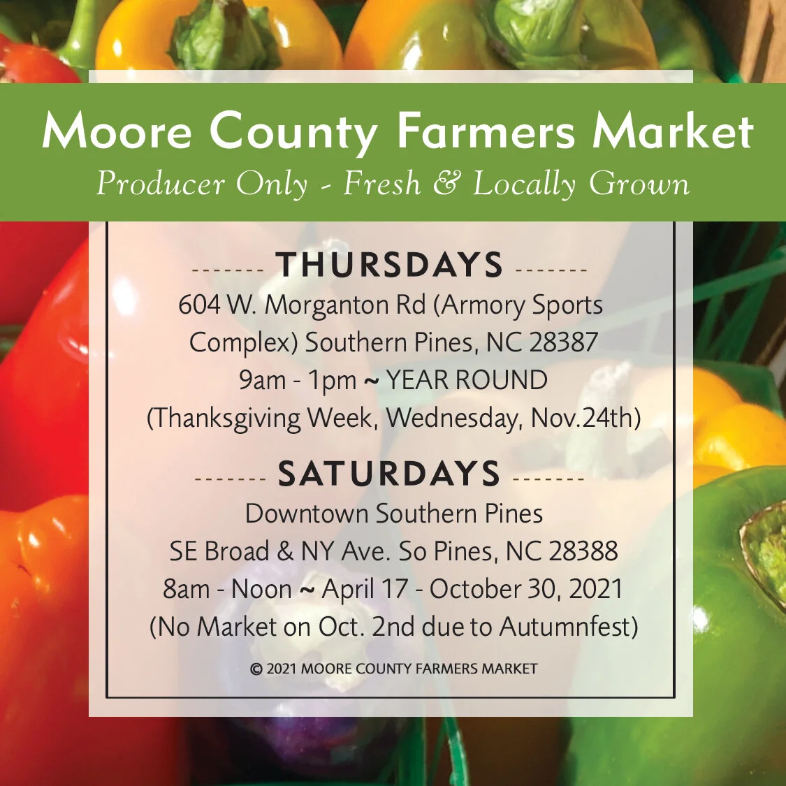 Moore County Farmers Market. Web Moore County Farmers Market 170 Memorial Drive Pinehurst.